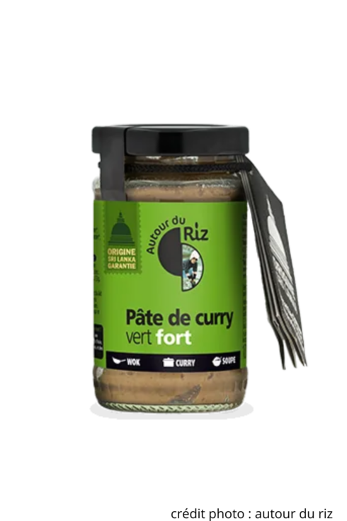 Plongez au cœur de la cuisine thaïlandaise avec la Pâte de Curry Vert de Autour du Riz. Connue pour son goût intense et sa touche légèrement citronnée, elle est parfaite pour des plats exotiques et parfumés.